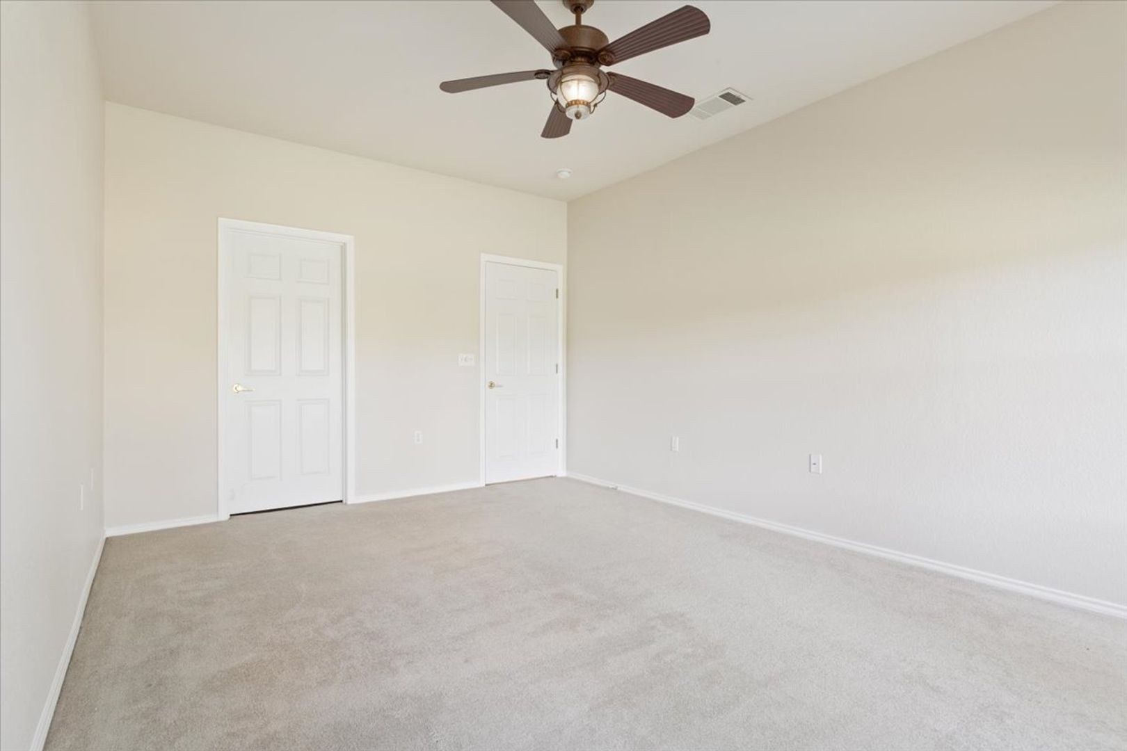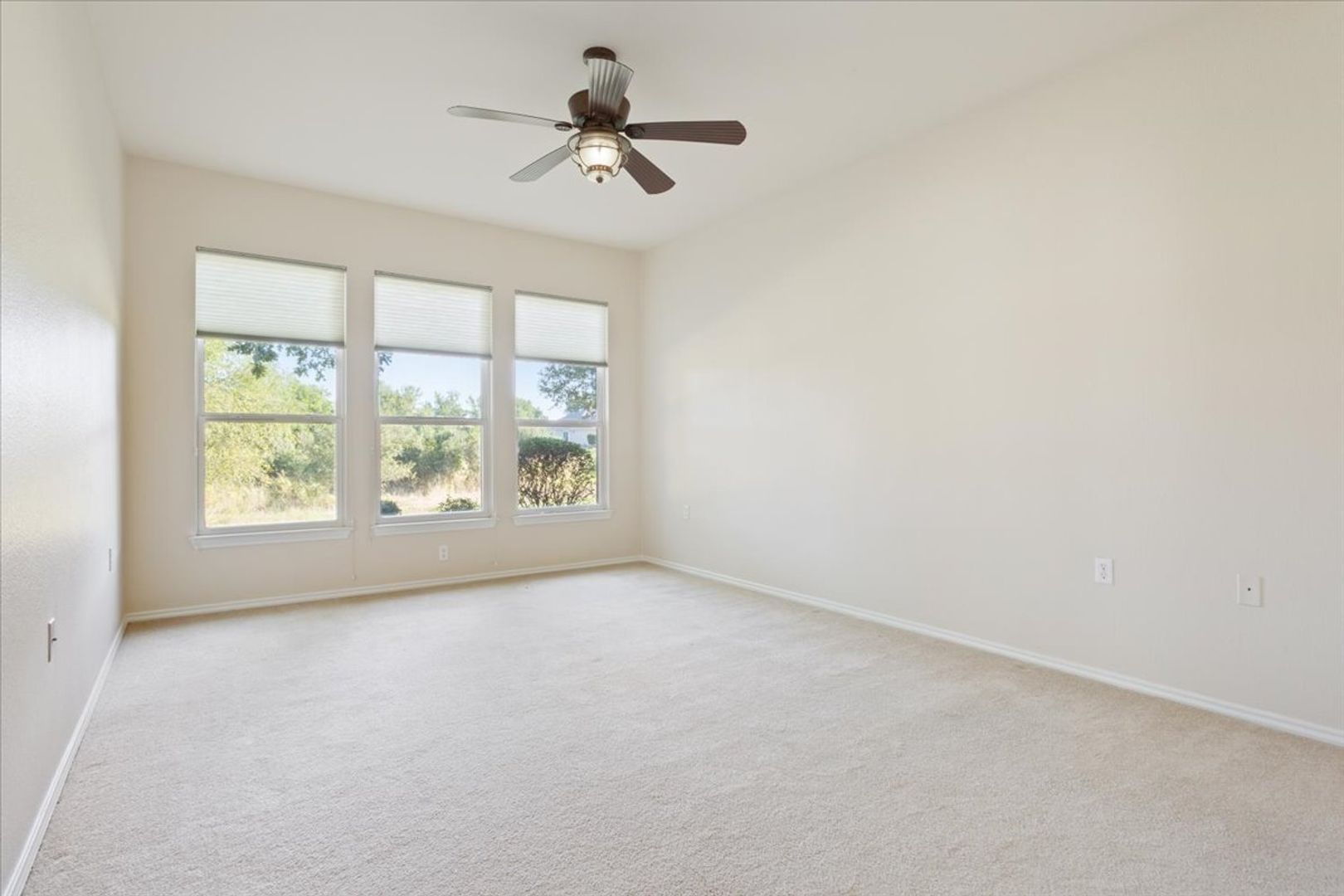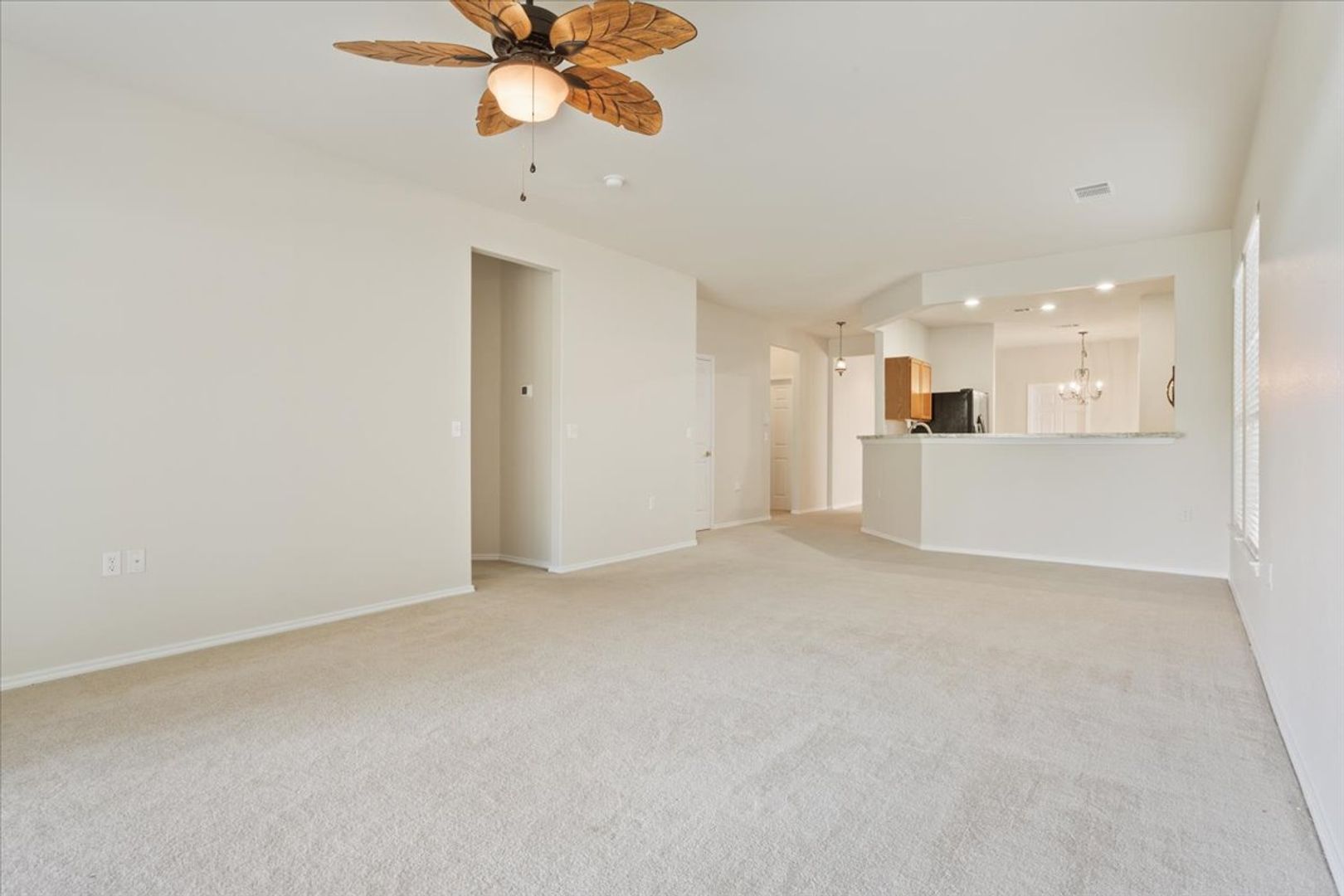 Centrally located in the heart of Sun City, this Monterrey plan offers 1426 square feet, 2 bedrooms, 2 bathrooms with beautiful greenspace views from the back patio. Minimum lease term required is 12 months. Hard flooring in the front entry, kitchenette space, kitchen, utility room and bathrooms. Carpet in the dining space, living room and bedrooms. Black kitchen appliances. Electric range. Ceiling fans in the living room, primary bedroom and guest bedroom. Dual vanity, walk-in shower and spacious walk-in closet in the primary bathroom. Vanity and bath tub in the guest bath. Large covered back porch. This property is within 1.6 miles from the Legacy Activity Center on Texas Drive. Tenants will be responsible for providing their own washer and dryer during their lease term. Smoking is not permitted at this property.
