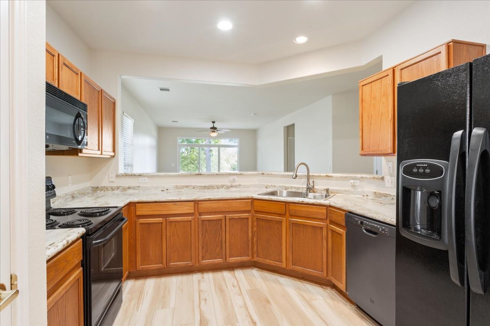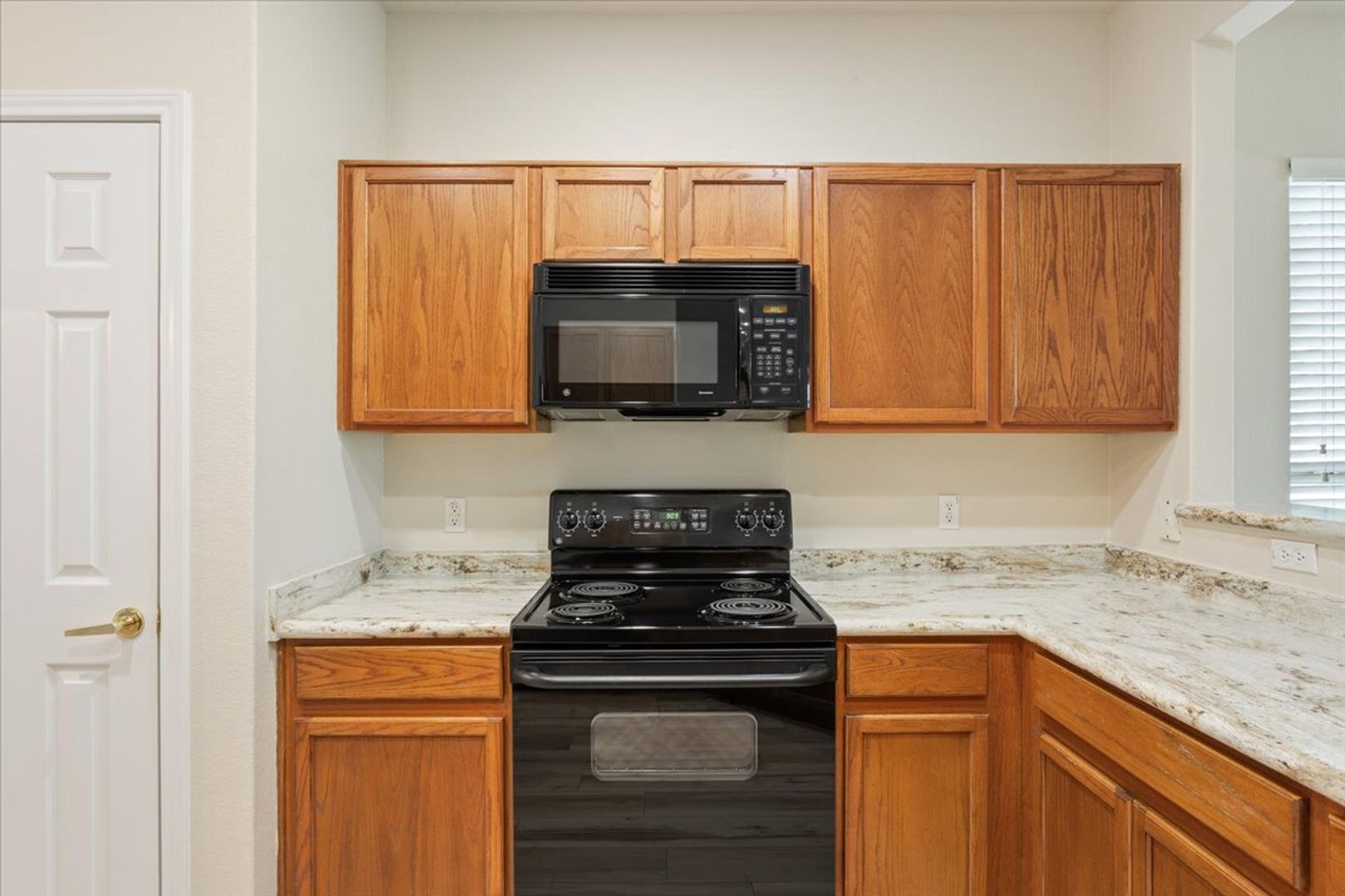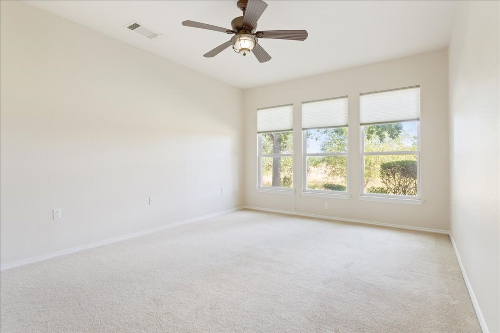 Centrally located in the heart of Sun City, this Monterrey plan offers 1426 square feet, 2 bedrooms, 2 bathrooms with beautiful greenspace views from the back patio. Minimum lease term required is 12 months. Hard flooring in the front entry, kitchenette space, kitchen, utility room and bathrooms. Carpet in the dining space, living room and bedrooms. Black kitchen appliances. Electric range. Ceiling fans in the living room, primary bedroom and guest bedroom. Dual vanity, walk-in shower and spacious walk-in closet in the primary bathroom. Vanity and bath tub in the guest bath. Large covered back porch. This property is within 1.6 miles from the Legacy Activity Center on Texas Drive. Tenants will be responsible for providing their own washer and dryer during their lease term. Smoking is not permitted at this property.