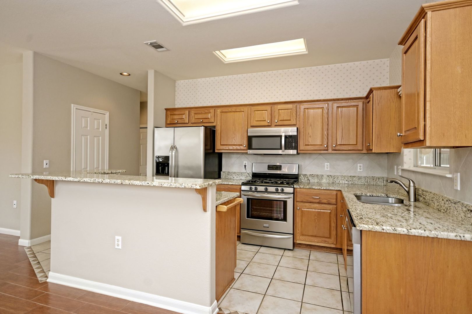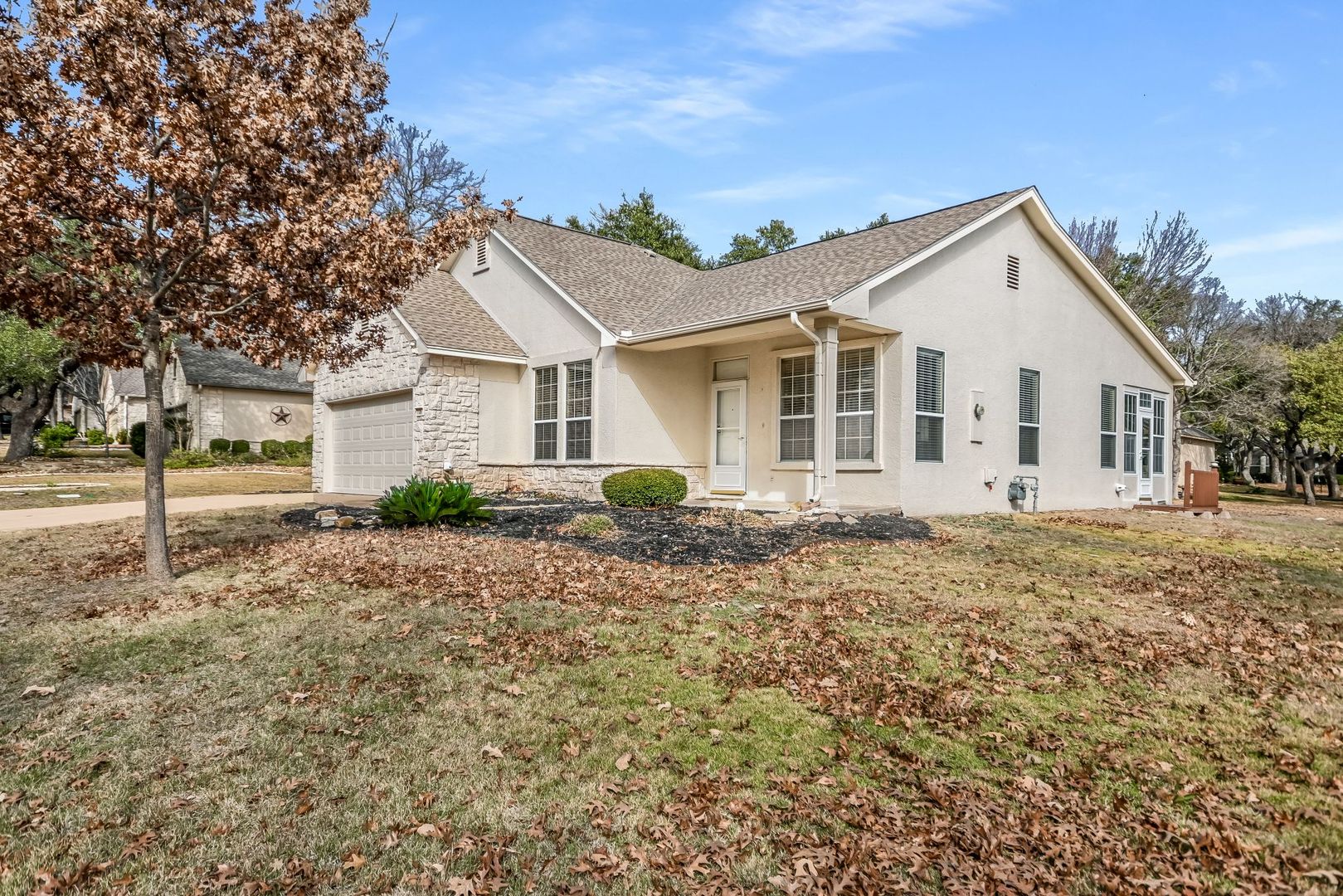 Centrally located in the heart of Sun City, this Lavaca floor plan provides 1119 square feet with 2 bedrooms, 2 bathrooms, and a sunroom. Hard flooring throughout (no carpet). Neutral interior paint color. The kitchen has granite countertops, stainless steel kitchen appliances and a gas range. The primary bedroom features a lovely bay window that overlooks the ribbon greenspace in the back of the property. The primary bathroom has a vanity, plenty of counter space and a walk-in shower. The second bedroom can be utilized as a home office or a space for guests to stay when they come to visit. The guest bath features a vanity and bathtub. The sunroom is a wonderful location to relax and unwind after a day of activities! The minimum lease term required is 12 months. Tenants must be 55 years of age or older to lease this property. Smoking is not permitted in the interior or exterior of this home. The Owner pays the yearly HOA dues and the basic lawn maintenance (mowing, edging and blowing). Anything more than the basic lawn maintenance will be up to the Owner. Tenants are responsible for the watering of the landscaping per the City of Georgetown water restrictions, the rent, utilities, pest control and renters insurance at the property. The refrigerator is the personal property of the Owner. Repair or replacement of this appliance will be up to the Owner and is not guaranteed. Tenants will be responsible for providing their own washer and dryer.