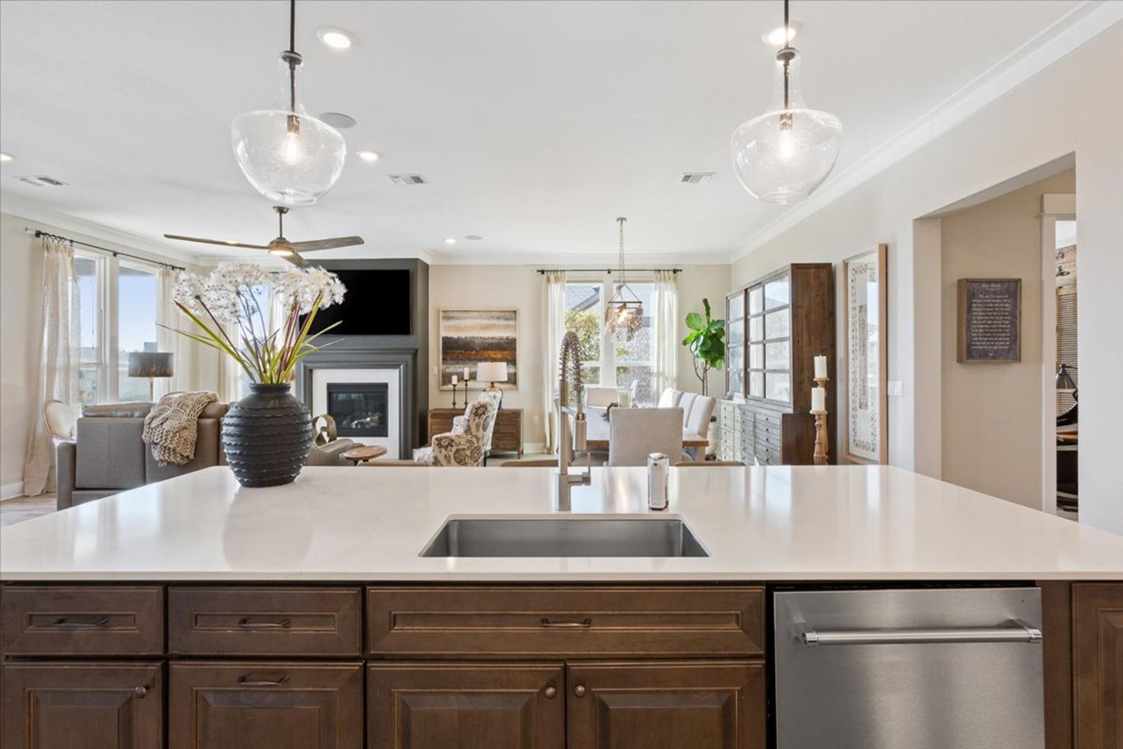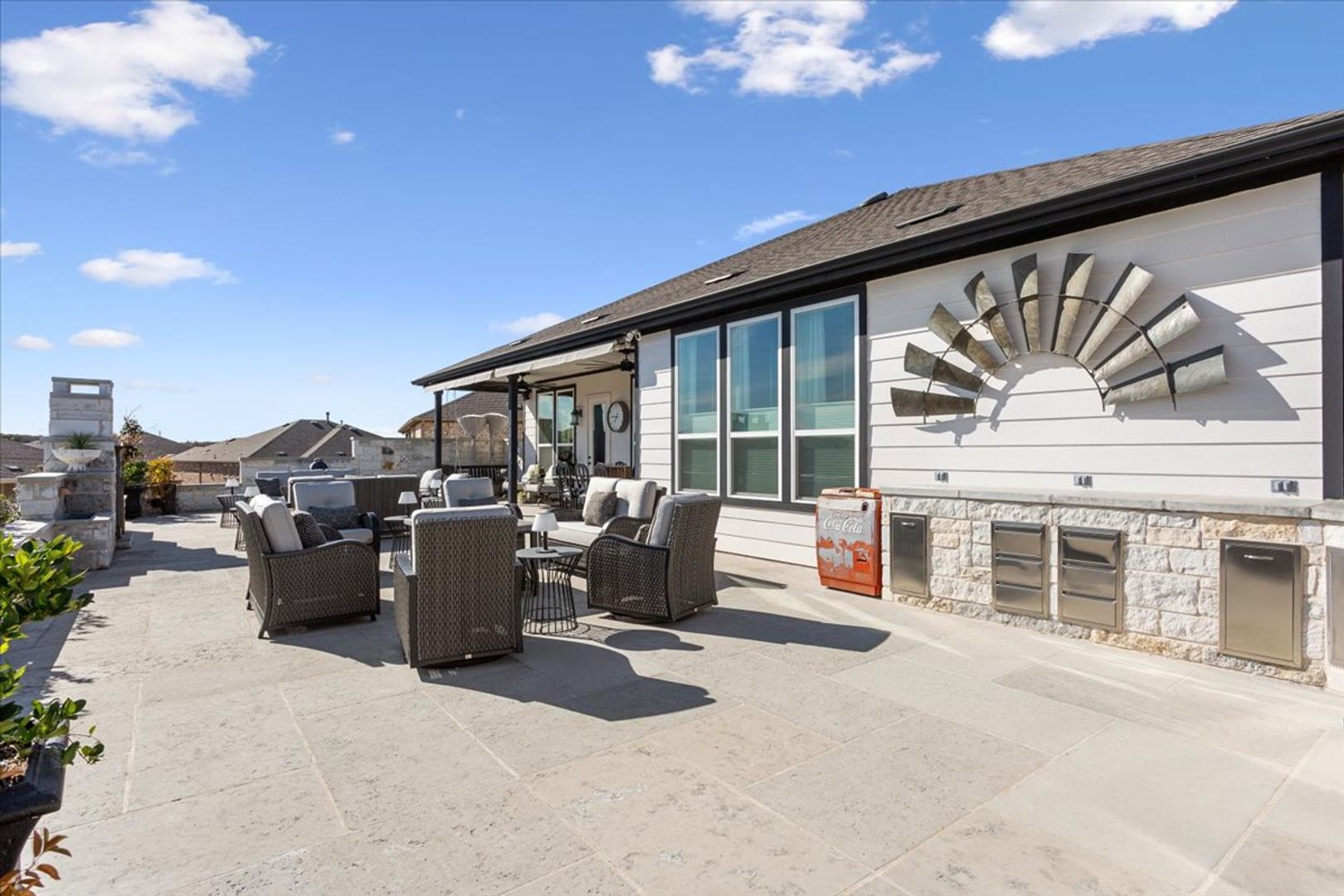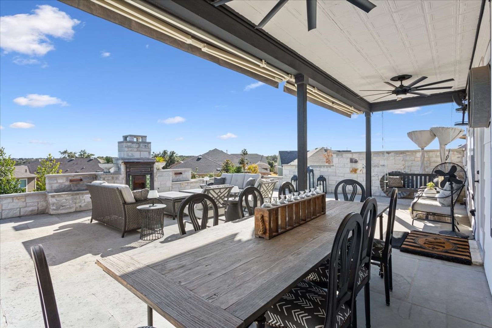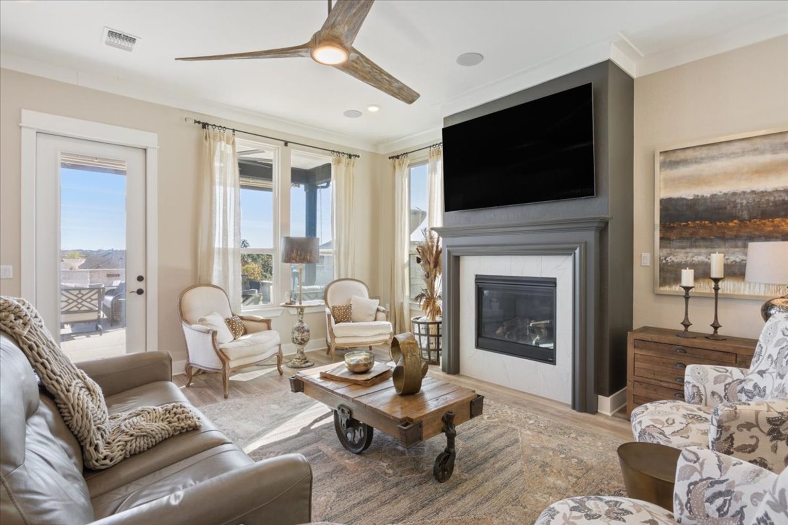 Welcome home to 704 Havenhills Lane! This incredible, fully furnished Renown floor plan is the perfect place to call home during your stay in Sun City. This home is approximately 2784 square feet with 2 bedrooms, 2.5 bathrooms and a den. The minimum lease term required 07/22/2026-09/30/2026. Hard flooring throughout. Decorative light fixtures. The spacious kitchen features a large kitchen island, stainless steel kitchen appliances and a gas range. The cafe dining space provides a table and seating for 6. Relax in front of the fireplace or enjoy hosting a dinner with 10 of your new friends in the gathering room. Unwind after a day of golf in the primary suite on the adjustable bed while watching your favorite TV show. The primary bath features a raised dual vanity, walk-in shower and walk-in closet. Your guests can enjoy their own space with an adjustable bed, TV and an ensuite with a raised vanity and walk-in shower. The gorgeous back patio is a wonderful place to enjoy a Texas sunset around the outdoor fireplace or host a gathering with friends and family. The Owners have thought of everything for this space! Outdoor BBQ, mini fridge, smoker, propane fire pit, an outdoor table that seats 8 and lots of comfortable seating. This is an all inclusive furnished home with basic cable and internet. Tenants must keep utilities in the average billing amounts by keeping temperature settings in the normal range. Owner provides basic lawn maintenance (mowing, edging, blowing) and pays the yearly HOA dues. The upstairs space, 3rd bedroom and one of the primary bedroom walk-in closets will be locked during a Tenant's stay.