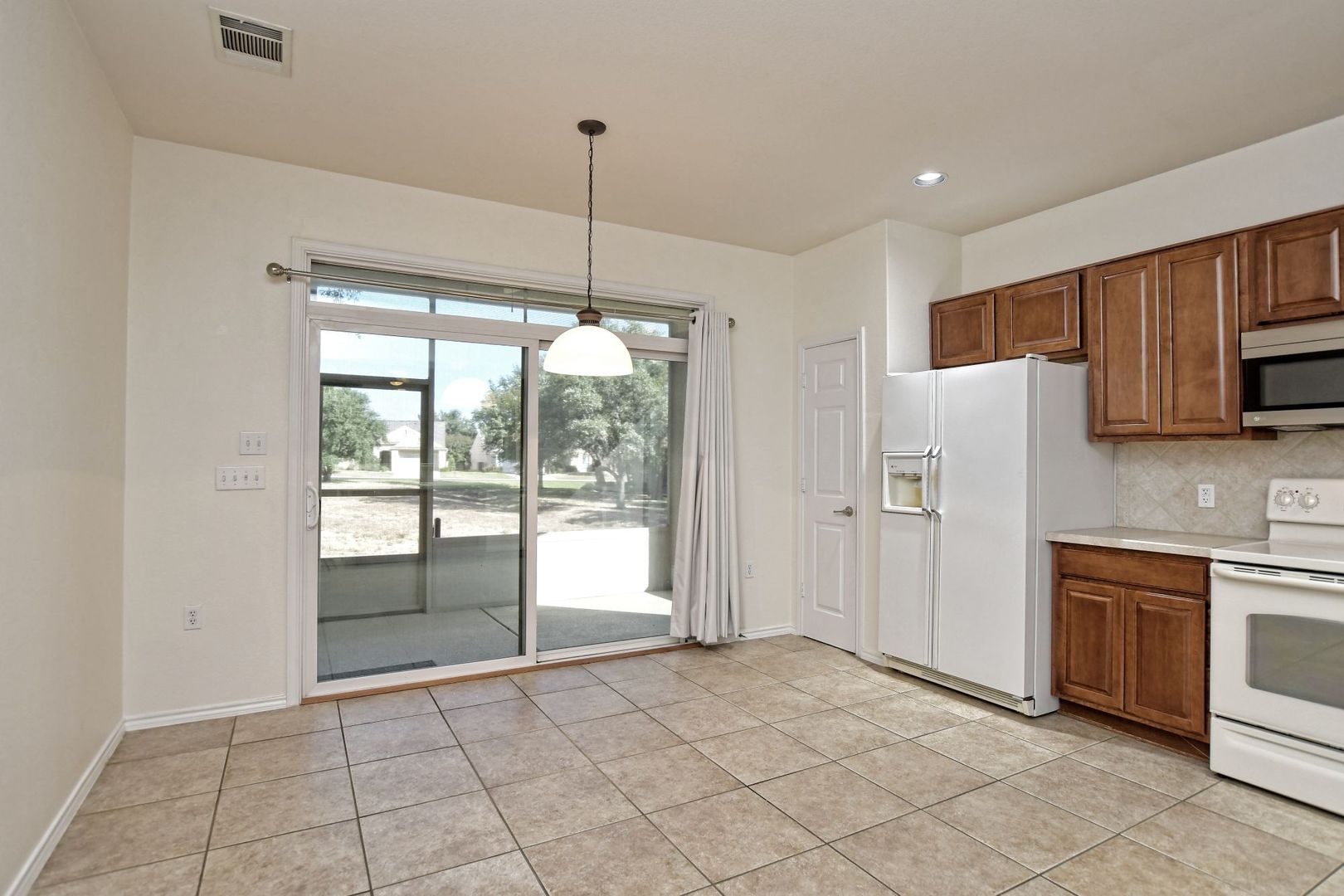 This Sun City gem is a Bluebonnet floor plan that offers 1472 square feet of comfortable living with two bedrooms, two bathrooms, and a flex room. There is hard flooring throughout, ensuring easy maintenance. The kitchen is equipped with white appliances, stainless steel microwave and an electric range, perfect for your culinary adventures. The primary bedroom is spacious and offers a serene green space view right outside the window. The primary bath is designed with a dual vanity, walk-in shower and a large walk-in closet that offers ample space for storing clothing, shoes and other items. Guests will enjoy their own space with easy access to the guest bath that features a vanity and walk-in shower. The additional flex room adds to the versatility of the property, offering a space that can be tailored to your needs, whether it be a home office or a hobby room. Enjoy the outdoors with a screened back patio and an extended covered back patio, overlooking the peaceful green space. The property is conveniently located with easy access to Ronald Reagan and is just 1.1 miles from the Cowan Creek Activity Center. The minimum lease term required is 12 months. Pets are not permitted at this property. Smoking is not permitted at this property. Tenants must be 55 years of age or older to lease this property. The Owner pays the yearly HOA dues and the lawn maintenance program fee for the landscaping. Tenants are responsible for the watering of the landscaping per the City of Georgetown water restrictions, the rent, utilities, renters insurance and the pest control at the property. Tenants are able to purchase a membership badge via the Membership Services Office for $100 per badge. Badges issued only to Tenants listed on the lease (2 badges max).