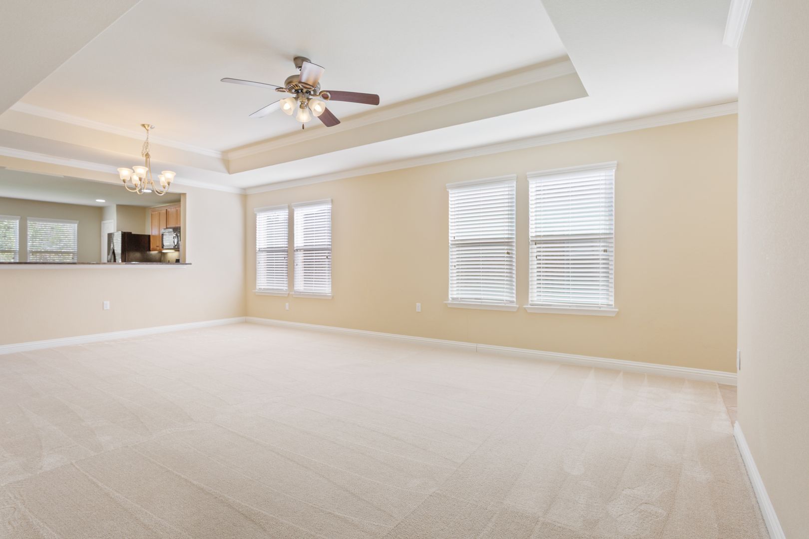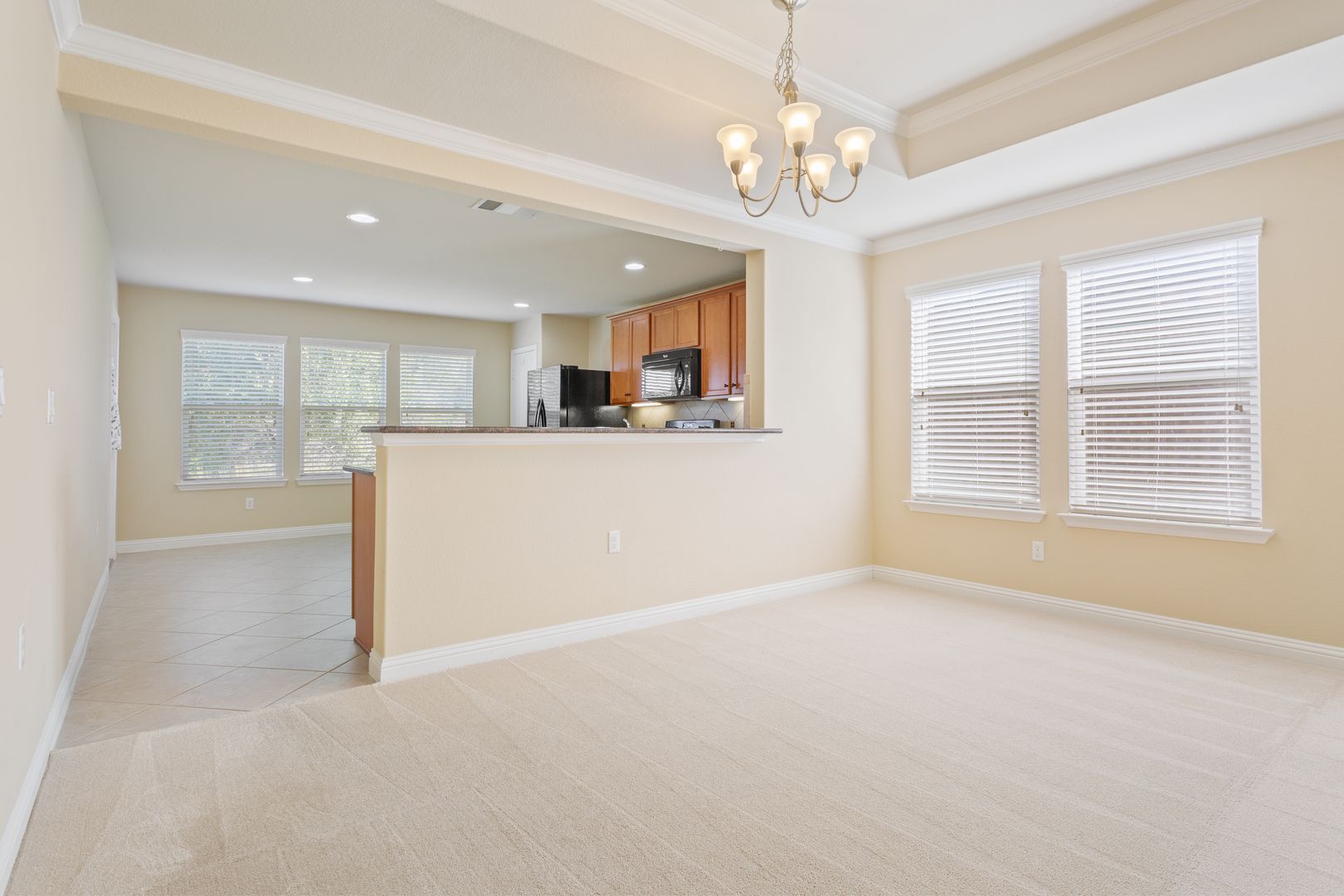 Located a mile from the Cowan Creek Activity Center and a little over a mile for the new Northpoint Activity Center, this adorable Pine Springs floor plan provides 1518 square feet with 2 bedrooms, 2 bathrooms and a den that can be utilized as an office space or additional guest sleeping area. Carpet in the main living areas, bedrooms and den. Tile in the kitchen, bathrooms, foyer and utility room. Tray ceilings in the living room and primary bedroom. Ceiling fans in the living room and primary bedroom. Black kitchen appliances. Dual vanity, walk-in shower and large walk-in closet in the primary bathroom. Vanity and bathtub in the guest bathroom. Covered back patio with beautiful green space views in the back of the property. Built-in cabinets and a small work bench in the garage is the perfect area to store items. The minimum lease term required is 12 months.